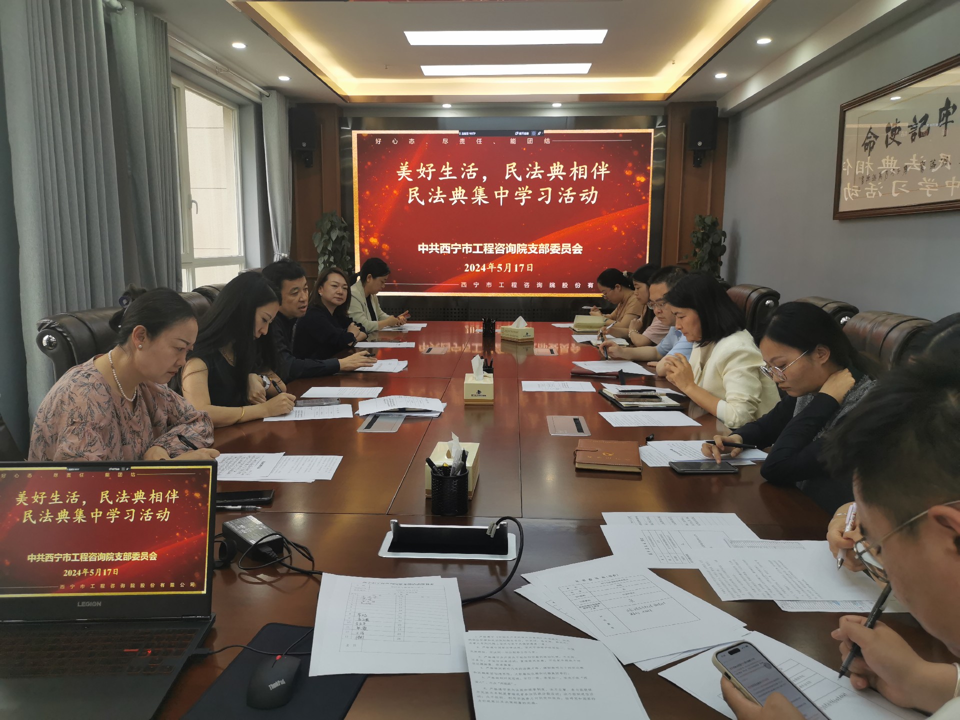 為貫徹落實(shí)習(xí)近平總書記關(guān)于“法制是最好的營商環(huán)境”重要論述,根據(jù)西寧市發(fā)展和改革委員會(huì)相關(guān)通知精神,按照咨詢?cè)狐h支部工作部署,結(jié)合咨詢?cè)簩?shí)際情況,5月17日下午咨詢?cè)狐h支部積極組織支部黨員在院會(huì)議室開展了“美好生活.民法典相伴”民法典集中學(xué)習(xí)活動(dòng)。